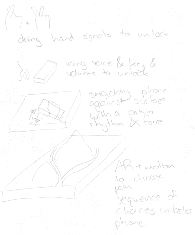 - User makes a sequence of decisions on paths to take to unlock the phone. Uses AR to generate a map of the current decision to be made.