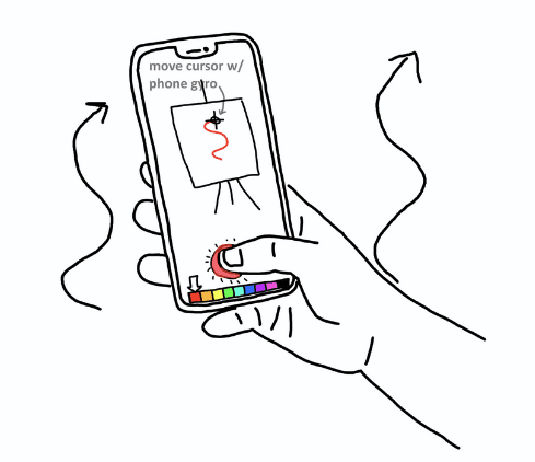 - This sketch varies from the chosen idea, such that instead of using the phone to draw the user uses their camera and hands to draw the symbols.