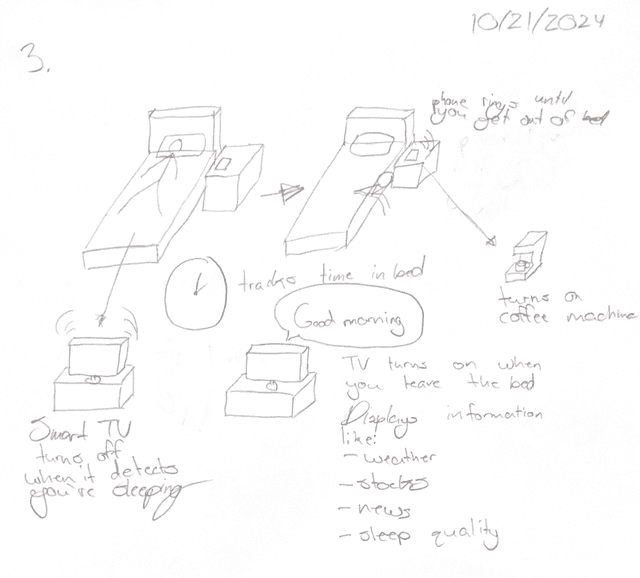 - This was idea on how a "smart" bed may function. Detecting when the user is asleep and out of bed, and doing different actions depending on the user's state.