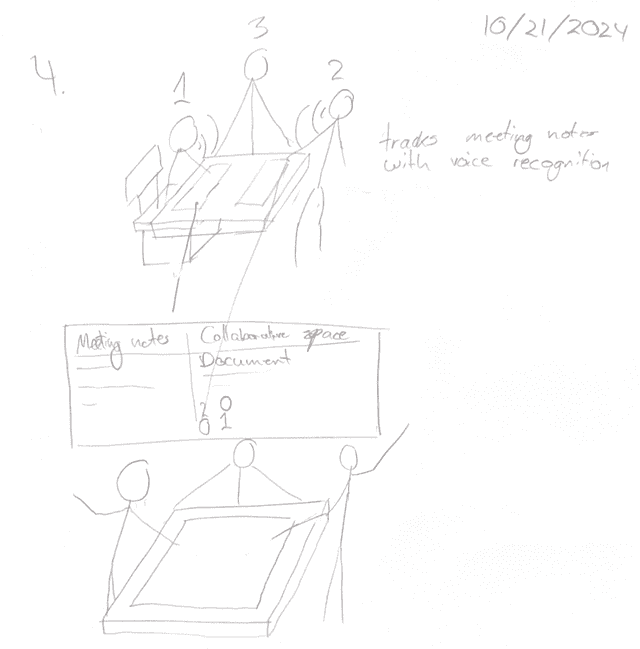 - A touchscreen table that would record meeting notes and display them, as well as allowing for collaboration on a computer.