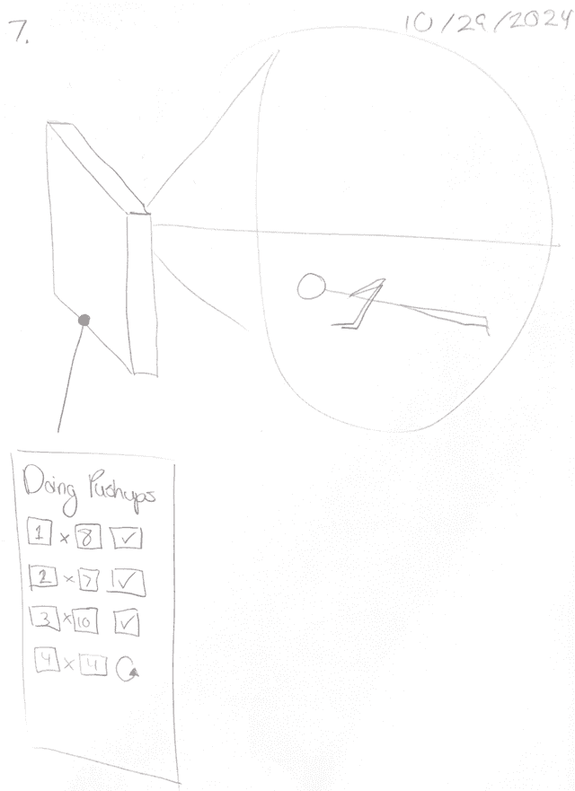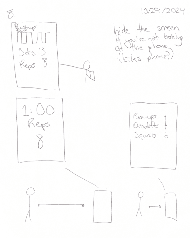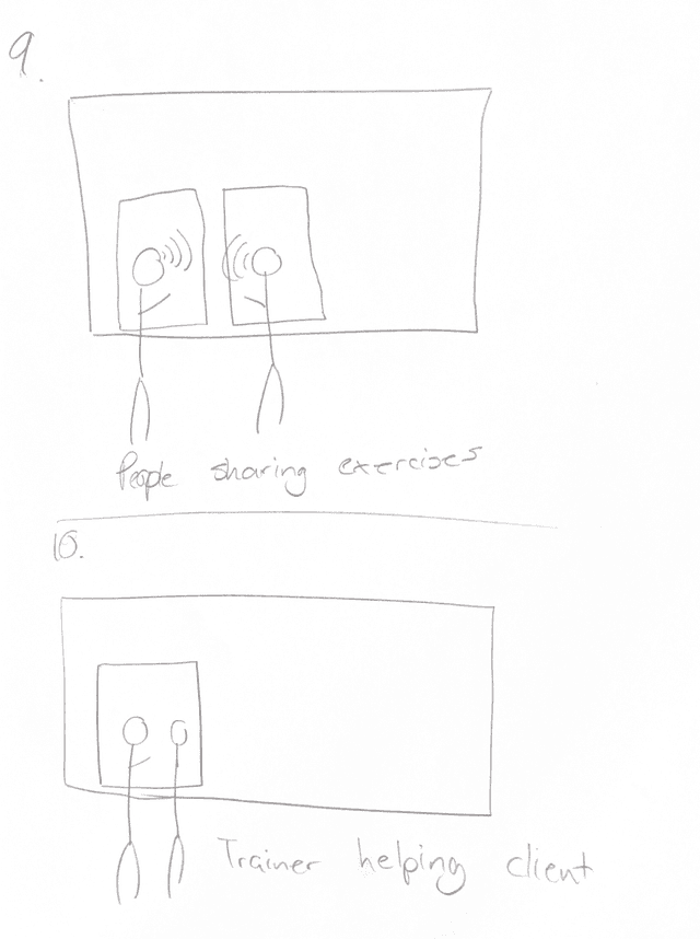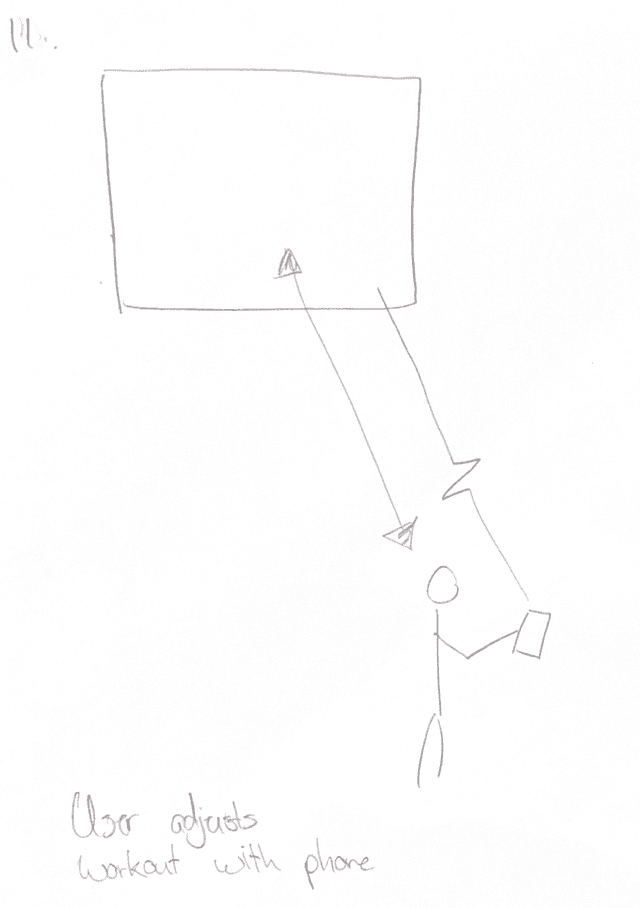 - The first sketch that created the idea for the application. User walks to screen to check their personal workout.